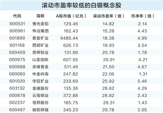 估值水平方面,截至12月8日收盘,13只白银概念股滚动市盈率低于30倍,其中豫光金铅、株冶集团、紫金矿业、西部矿业滚动市盈率不到20倍。豫光金铅滚动市盈率为14.82倍。今年前三季度,公司实现净利润6.21亿元,同比增长11.99%。