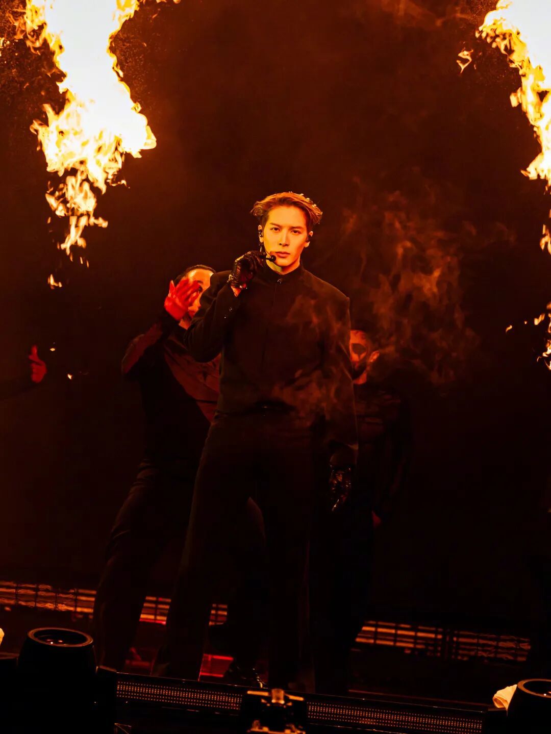 舞台上硬控全场的KAI,长时间在强光下劲歌热舞,外加连轴转的体力消耗,都是对底妆的战斗值的不小考验。于是,轻透柔焦的粉底几乎成为KAI在舞台上的第二层皮肤。哪怕暴汗唱跳后,这张脸的权威感依旧,无油光无斑驳的底妆抢夺注意力。