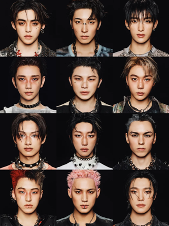 同样的底妆审美,也早已在韩国男艺人的妆造上得到体现。去年seventeen回归的专辑概念妆容,全员战损风造型让人移不开眼睛。妆感减淡,让底妆保持匀称而真实的皮肤质感;底妆肤色压深,让战损特征、雀斑等玩妆细节不显得悬浮,像是原本就长在脸上。