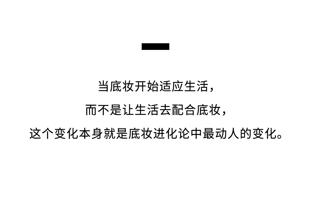 从面子工程,转向底妆实用主义,我们对粉底多功能的期待,和人们生活方式的变化紧密相关。当我们不再把周末困在家中,而是在健身房、山野里……探索生活更多尽兴可能。而这些场景,是一定容不下“瓷娃娃式的完美底妆”的。